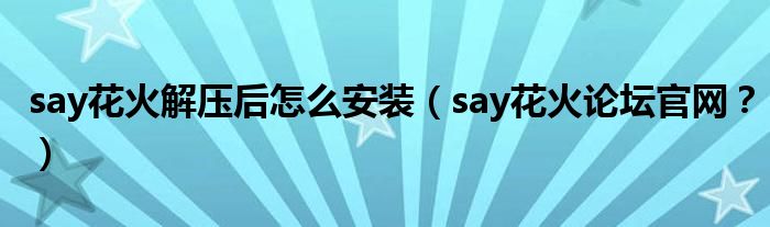 大家好,小安來為大家解答以上問題。say花火解壓后怎么安裝,say花火論壇官網?很多人還不知道,現在讓我們一起來看看吧!