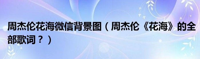 大家好,小安來為大家解答以上問題。周杰倫花海微信背景圖,周杰倫《花海》的全部歌詞?很多人還不知道,現在讓我們一起來看看吧!