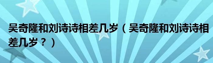 大家好,小安來為大家解答以上問題。吳奇隆和劉詩詩相差幾歲,吳奇隆和劉詩詩相差幾歲?很多人還不知道,現(xiàn)在讓我們一起來看看吧!