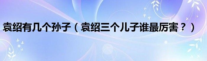 大家好,小安來為大家解答以上問題。袁紹有幾個孫子,袁紹三個兒子誰最厲害?很多人還不知道,現在讓我們一起來看看吧!