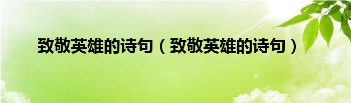 大家好,小安來為大家解答以上問題。致敬英雄的詩句,致敬英雄的詩句很多人還不知道,現在讓我們一起來看看吧!