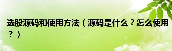 大家好,小安來為大家解答以上問題。選股源碼和使用方法,源碼是什么?怎么使用?很多人還不知道,現在讓我們一起來看看吧!