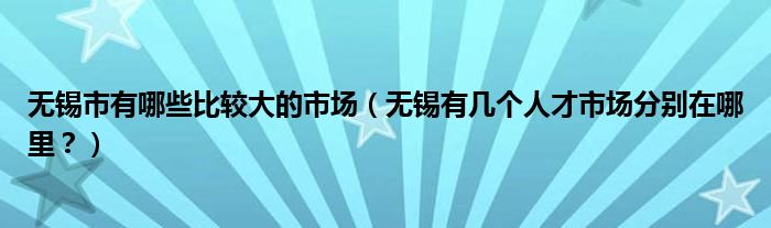 大家好,小安來為大家解答以上問題。無錫市有哪些比較大的市場,無錫有幾個人才市場分別在哪里?很多人還不知道,現在讓我們一起來看看吧!