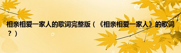 大家好,小安來為大家解答以上問題。相親相愛一家人的歌詞完整版,《相親相愛一家人》的歌詞?很多人還不知道,現在讓我們一起來看看吧!