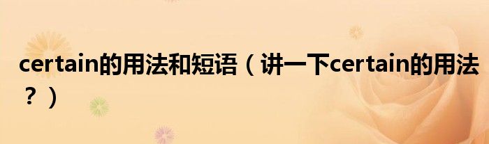 大家好,小安來為大家解答以上問題。certain的用法和短語,講一下certain的用法?很多人還不知道,現在讓我們一起來看看吧!