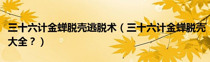 大家好,小安來為大家解答以上問題。三十六計金蟬脫殼逃脫術,三十六計金蟬脫殼大全?很多人還不知道,現在讓我們一起來看看吧!