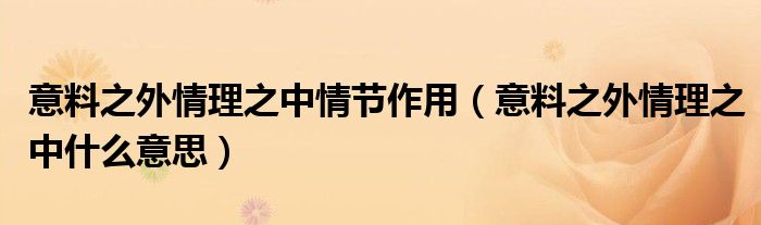 大家好,小安來為大家解答以上問題。意料之外情理之中情節(jié)作用,意料之外情理之中什么意思很多人還不知道,現(xiàn)在讓我們一起來看看吧!
