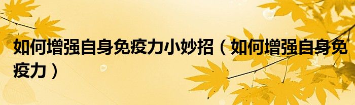 大家好,小安來為大家解答以上問題。如何增強自身免疫力小妙招,如何增強自身免疫力很多人還不知道,現在讓我們一起來看看吧!