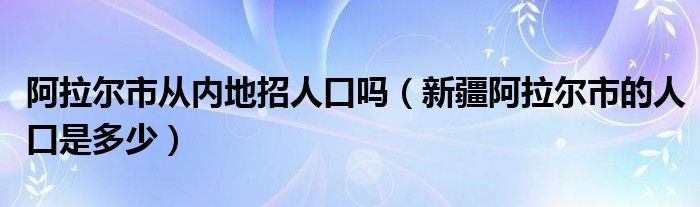 大家好,小安來為大家解答以上問題。阿拉爾市從內地招人口嗎,新疆阿拉爾市的人口是多少很多人還不知道,現在讓我們一起來看看吧!
