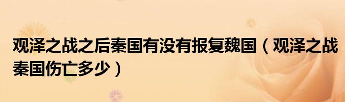 大家好,小安來為大家解答以上問題。觀澤之戰之后秦國有沒有報復魏國,觀澤之戰秦國傷亡多少很多人還不知道,現在讓我們一起來看看吧!