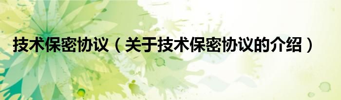 大家好,小安來為大家解答以上的問題。技術(shù)保密協(xié)議,關(guān)于技術(shù)保密協(xié)議的介紹很多人還不知道,現(xiàn)在讓我們一起來看看吧!
