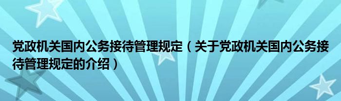 大家好,小安來為大家解答以上的問題。黨政機關國內公務接待管理規定,關于黨政機關國內公務接待管理規定的介紹很多人還不知道,現在讓我們一起來看看吧!