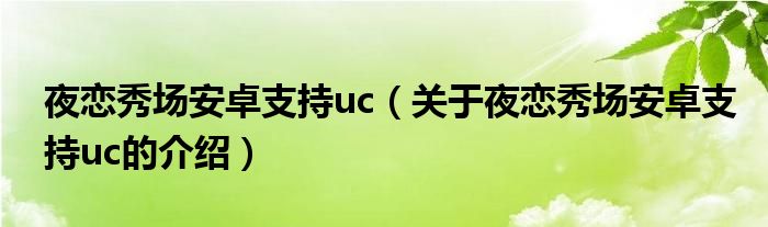 大家好,小安來為大家解答以上的問題。夜戀秀場安卓支持uc,關(guān)于夜戀秀場安卓支持uc的介紹很多人還不知道,現(xiàn)在讓我們一起來看看吧!