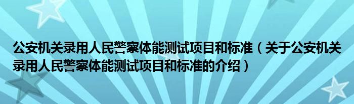 大家好,小安來為大家解答以上的問題。公安機關錄用人民警察體能測試項目和標準,關于公安機關錄用人民警察體能測試項目和標準的介紹很多人還不知道,現在讓我們一起來看看吧!