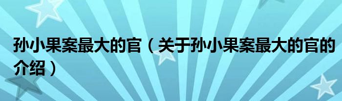 大家好,小安來為大家解答以上的問題。孫小果案最大的官,關(guān)于孫小果案最大的官的介紹很多人還不知道,現(xiàn)在讓我們一起來看看吧!