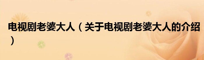 大家好,小安來為大家解答以上的問題。電視劇老婆大人,關于電視劇老婆大人的介紹很多人還不知道,現在讓我們一起來看看吧!