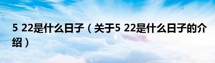 大家好,小安來為大家解答以上的問題。5 22是什么日子,關于5 22是什么日子的介紹很多人還不知道,現在讓我們一起來看看吧!