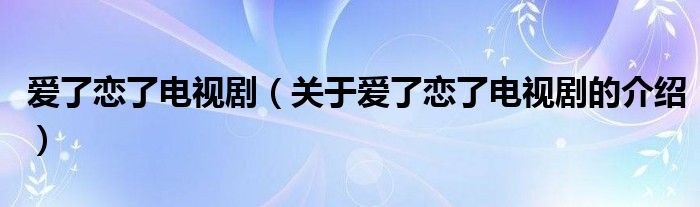 大家好,小安來為大家解答以上的問題。愛了戀了電視劇,關于愛了戀了電視劇的介紹很多人還不知道,現在讓我們一起來看看吧!