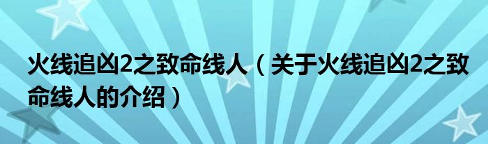 大家好,小安來為大家解答以上的問題。火線追兇2之致命線人,關于火線追兇2之致命線人的介紹很多人還不知道,現在讓我們一起來看看吧!