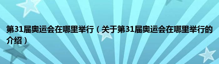 大家好,小安來為大家解答以上的問題。第31屆奧運會在哪里舉行,關于第31屆奧運會在哪里舉行的介紹很多人還不知道,現在讓我們一起來看看吧!