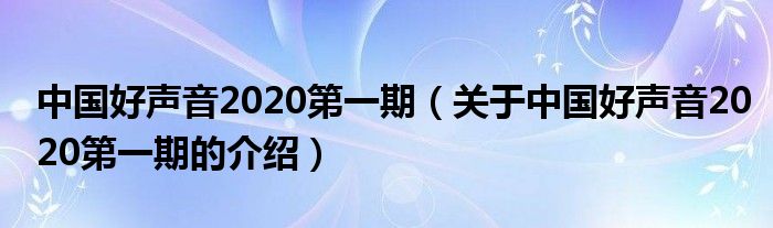 大家好,小安來為大家解答以上的問題。中國好聲音2020第一期,關于中國好聲音2020第一期的介紹很多人還不知道,現在讓我們一起來看看吧!