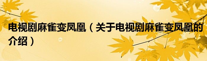 大家好,小安來為大家解答以上的問題。電視劇麻雀變鳳凰,關于電視劇麻雀變鳳凰的介紹很多人還不知道,現在讓我們一起來看看吧!