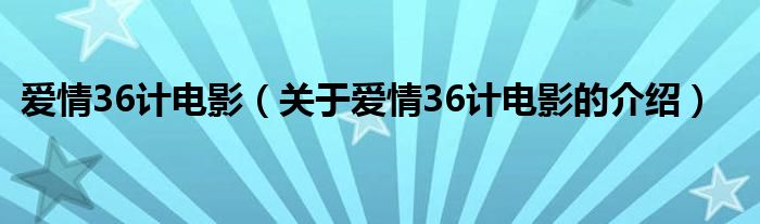 大家好,小安來為大家解答以上的問題。愛情36計電影,關(guān)于愛情36計電影的介紹很多人還不知道,現(xiàn)在讓我們一起來看看吧!
