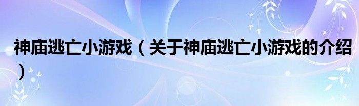 大家好,小安來為大家解答以上的問題。神廟逃亡小游戲,關(guān)于神廟逃亡小游戲的介紹很多人還不知道,現(xiàn)在讓我們一起來看看吧!