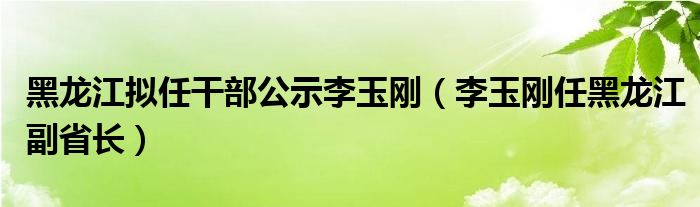 大家好,黑龍江擬任干部公示李玉剛,李玉剛任黑龍江副省長很多人還不知道,現在讓我們一起來看看吧!