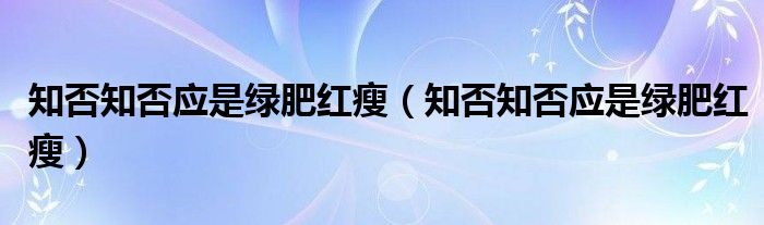 大家好,知否知否應是綠肥紅瘦,知否知否應是綠肥紅瘦很多人還不知道,現在讓我們一起來看看吧!