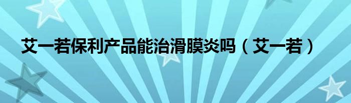 大家好,艾一若保利產品能治滑膜炎嗎,艾一若很多人還不知道,現在讓我們一起來看看吧!