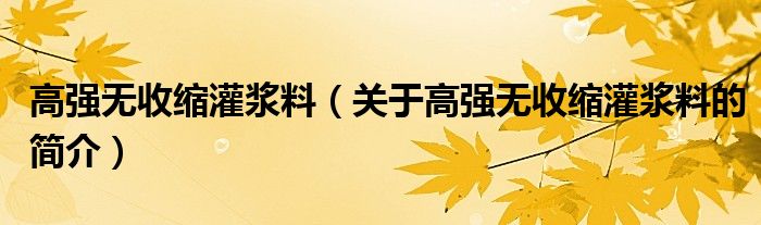 本文關于高強無收縮灌漿料的簡介就講解完畢,希望對大家有所幫助。