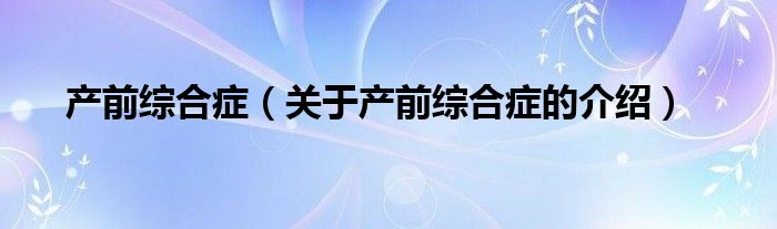 大家好,小安來為大家解答以上的問題。產前綜合癥,關于產前綜合癥的介紹很多人還不知道,現在讓我們一起來看看吧!