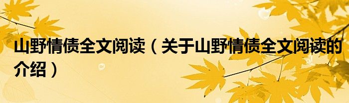 大家好,小安來為大家解答以上的問題。山野情債全文閱讀,關于山野情債全文閱讀的介紹很多人還不知道,現在讓我們一起來看看吧!