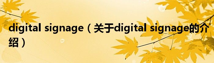 大家好,小安來為大家解答以上的問題。digital signage,關于digital signage的介紹很多人還不知道,現在讓我們一起來看看吧!