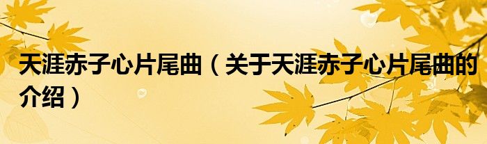 大家好,小安來為大家解答以上的問題。天涯赤子心片尾曲,關于天涯赤子心片尾曲的介紹很多人還不知道,現在讓我們一起來看看吧!