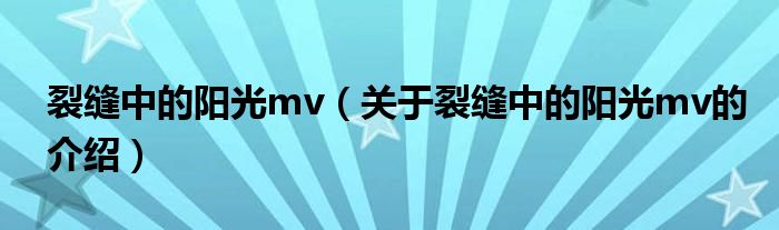 大家好,小安來為大家解答以上的問題。裂縫中的陽光mv,關于裂縫中的陽光mv的介紹很多人還不知道,現在讓我們一起來看看吧!