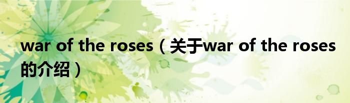 大家好,小安來為大家解答以上的問題。war of the roses,關(guān)于war of the roses的介紹很多人還不知道,現(xiàn)在讓我們一起來看看吧!