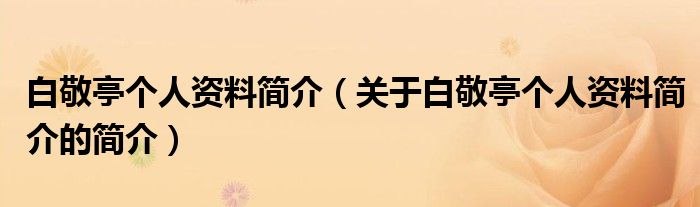 大家好,白敬亭個人資料簡介,關(guān)于白敬亭個人資料簡介的簡介很多人還不知道,現(xiàn)在讓我們一起來看看吧!