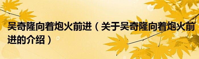 大家好,小安來為大家解答以上的問題。吳奇隆向著炮火前進(jìn),關(guān)于吳奇隆向著炮火前進(jìn)的介紹很多人還不知道,現(xiàn)在讓我們一起來看看吧!