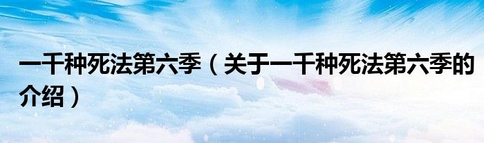 大家好,小安來為大家解答以上的問題。一千種死法第六季,關于一千種死法第六季的介紹很多人還不知道,現在讓我們一起來看看吧!