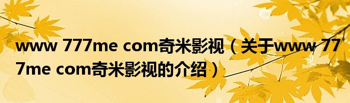 大家好,小安來為大家解答以上的問題。www 777me com奇米影視,關(guān)于www 777me com奇米影視的介紹很多人還不知道,現(xiàn)在讓我們一起來看看吧!