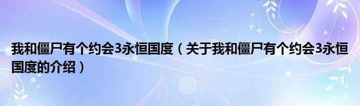 大家好,小安來為大家解答以上的問題。我和僵尸有個約會3永恒國度,關于我和僵尸有個約會3永恒國度的介紹很多人還不知道,現在讓我們一起來看看吧!