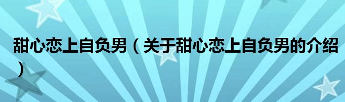大家好,小安來為大家解答以上的問題。甜心戀上自負男,關于甜心戀上自負男的介紹很多人還不知道,現在讓我們一起來看看吧!