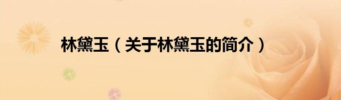 大家好,林黛玉,關于林黛玉的簡介很多人還不知道,現在讓我們一起來看看吧!