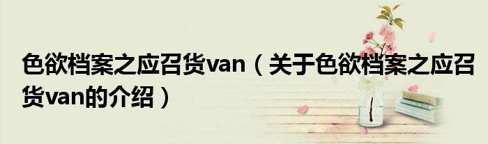 大家好,小安來為大家解答以上的問題。色欲檔案之應召貨van,關于色欲檔案之應召貨van的介紹很多人還不知道,現在讓我們一起來看看吧!