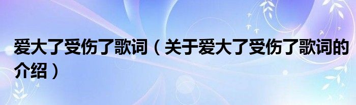 大家好,小安來為大家解答以上的問題。愛大了受傷了歌詞,關于愛大了受傷了歌詞的介紹很多人還不知道,現在讓我們一起來看看吧!