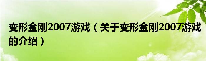 大家好,小安來為大家解答以上的問題。變形金剛2007游戲,關于變形金剛2007游戲的介紹很多人還不知道,現在讓我們一起來看看吧!