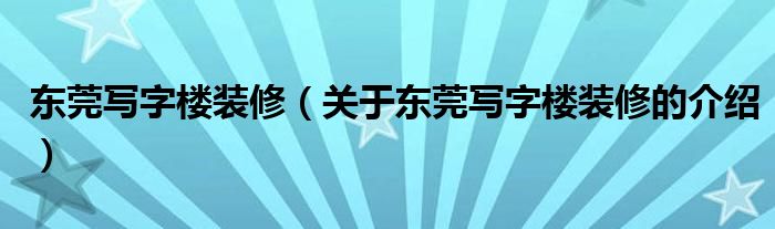 大家好,小安來為大家解答以上的問題。東莞寫字樓裝修,關于東莞寫字樓裝修的介紹很多人還不知道,現在讓我們一起來看看吧!