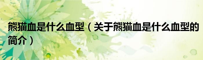 本文關于熊貓血是什么血型的簡介就講解完畢,希望對大家有所幫助。